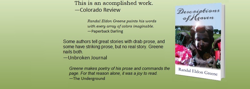Randal Eldon Greene is the author of Descriptions of Heaven and the collection Blabber, Chat, Shouting Match: 50 Dialogue-Only Fictions.